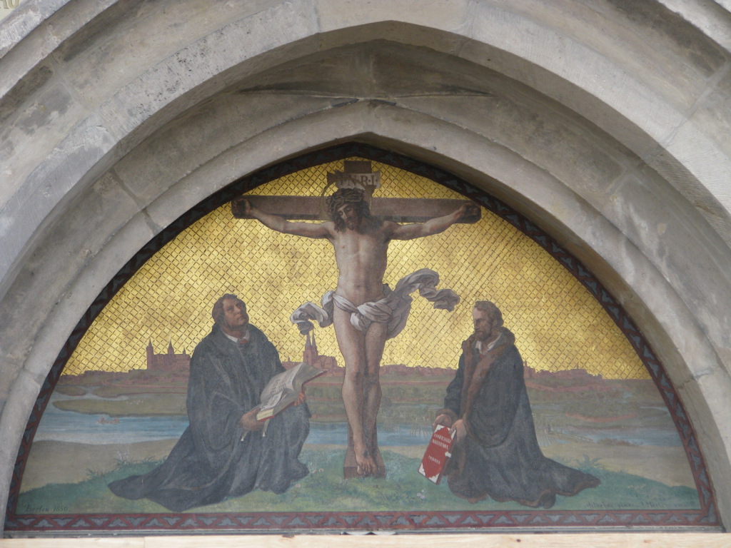 Photo of artwork now above the door where Luther posted his 95 Theses. Taken on a trip to Germany in 2011.