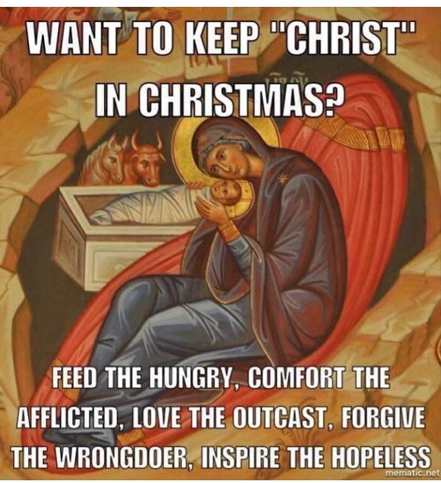 - We preserve the Christian nature of the holiday season when our faith and actions go together. As James wrote, “Faith by itself, if it does not have works, is dead.” (James 2:17) It has been said that serving is the new evangelism. In other words, by helping other we communicate something about our faith. By serving others, we earn the right to be heard and gain credibility for our message of God’s love and grace. Here’s a graphic sent to me: